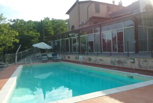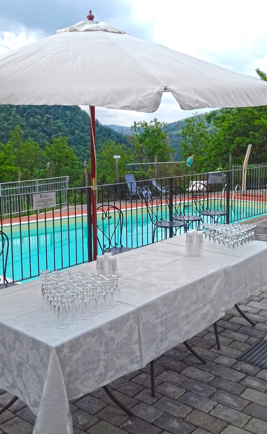 Ristorante immerso nel verde. Ampie sale interne vista piscina, spazi esterni con panoramica, cucina tipica toscana fatta a mano